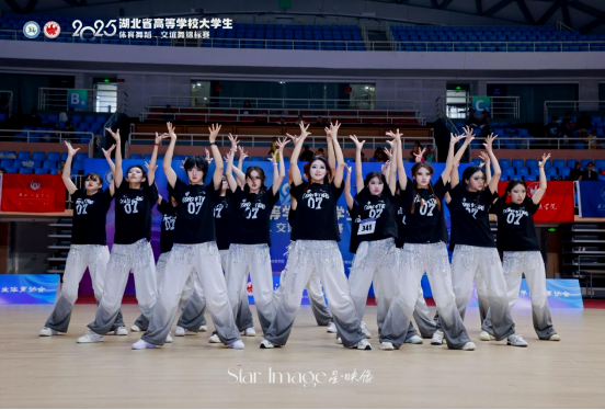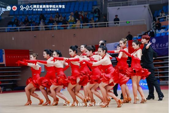 本次赛事由湖北省学生体育协会主办,以“享受乐趣、增强体质、健全人格、锻炼意志”为宗旨,是湖北省高校体育舞蹈领域的权威赛事。备赛过程充满挑战,因队员分散在不同学院和校区、课程安排差异大,训练只能集中在中午及周末。教练员侯畅、李美佳全程跟进,从动作编排、队形磨合到音乐适配、细节打磨逐一攻坚,队员们克服跨校区,跨舞种的困难,高效完成备战。